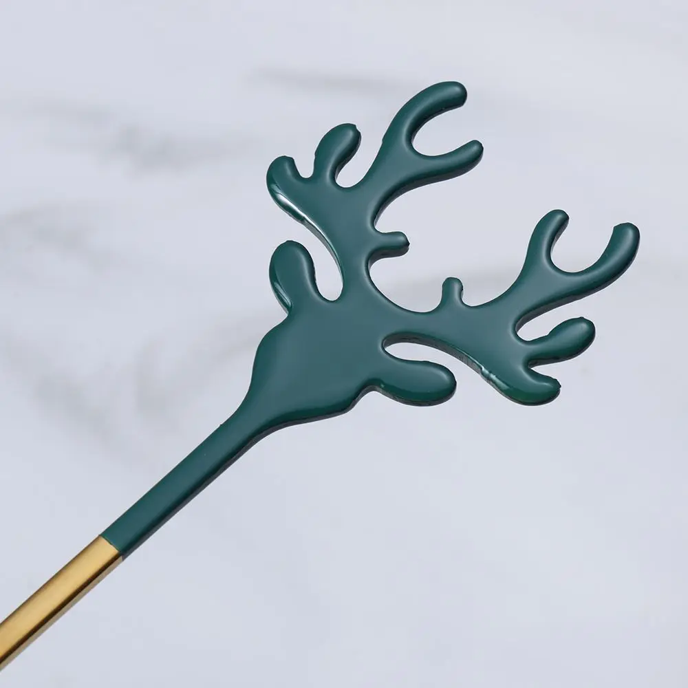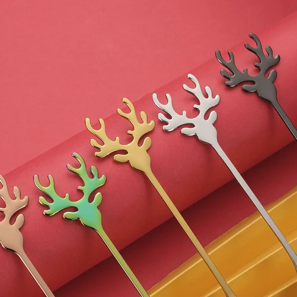 Christmas Deer Head Coffee Scoops Stainless Steel Xmas Antlers Ice Cream Desserts Spoon Tableware Stirring Tea Spoons - silver