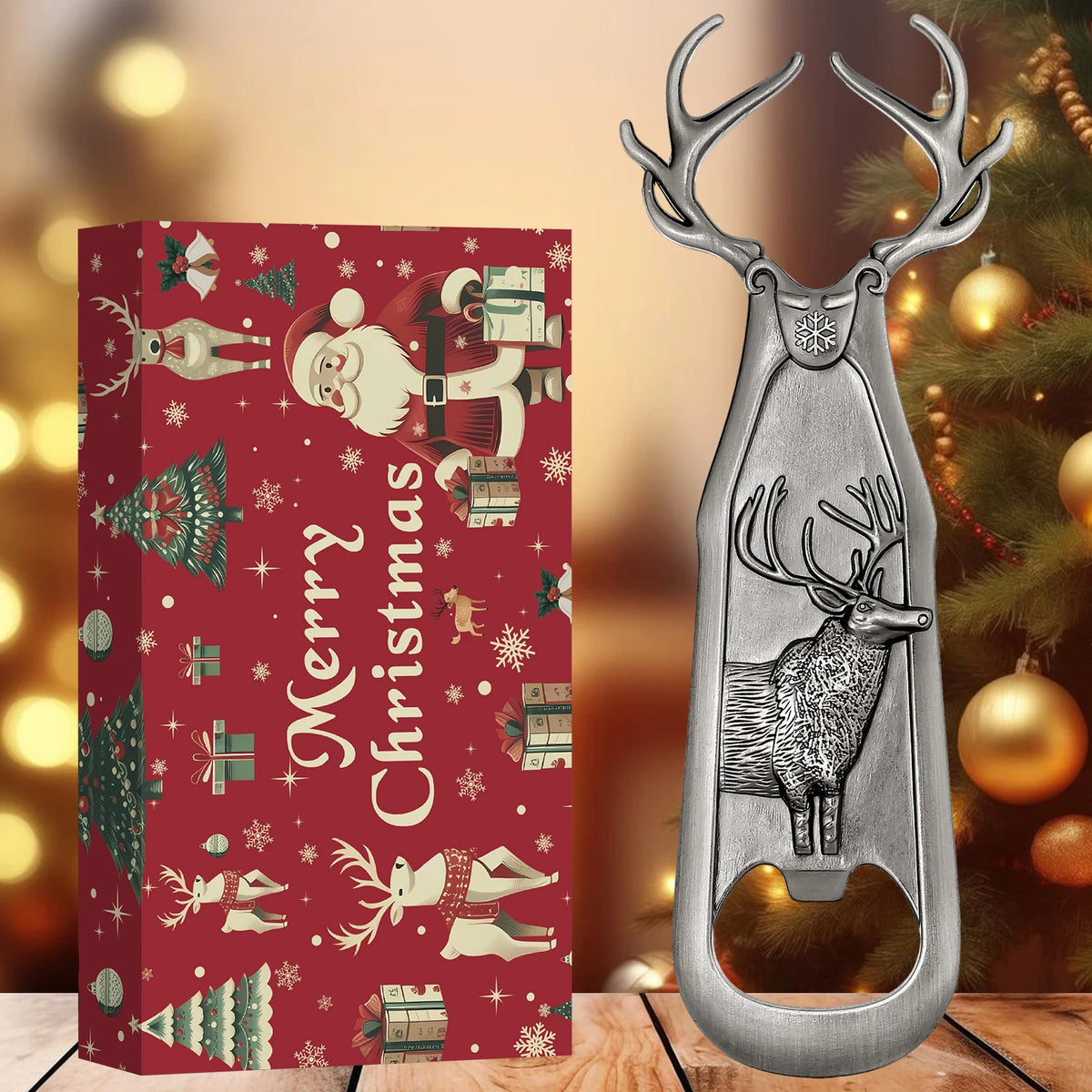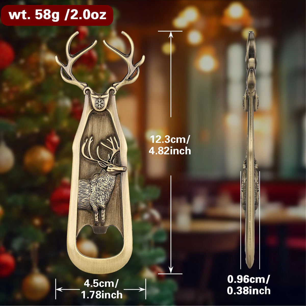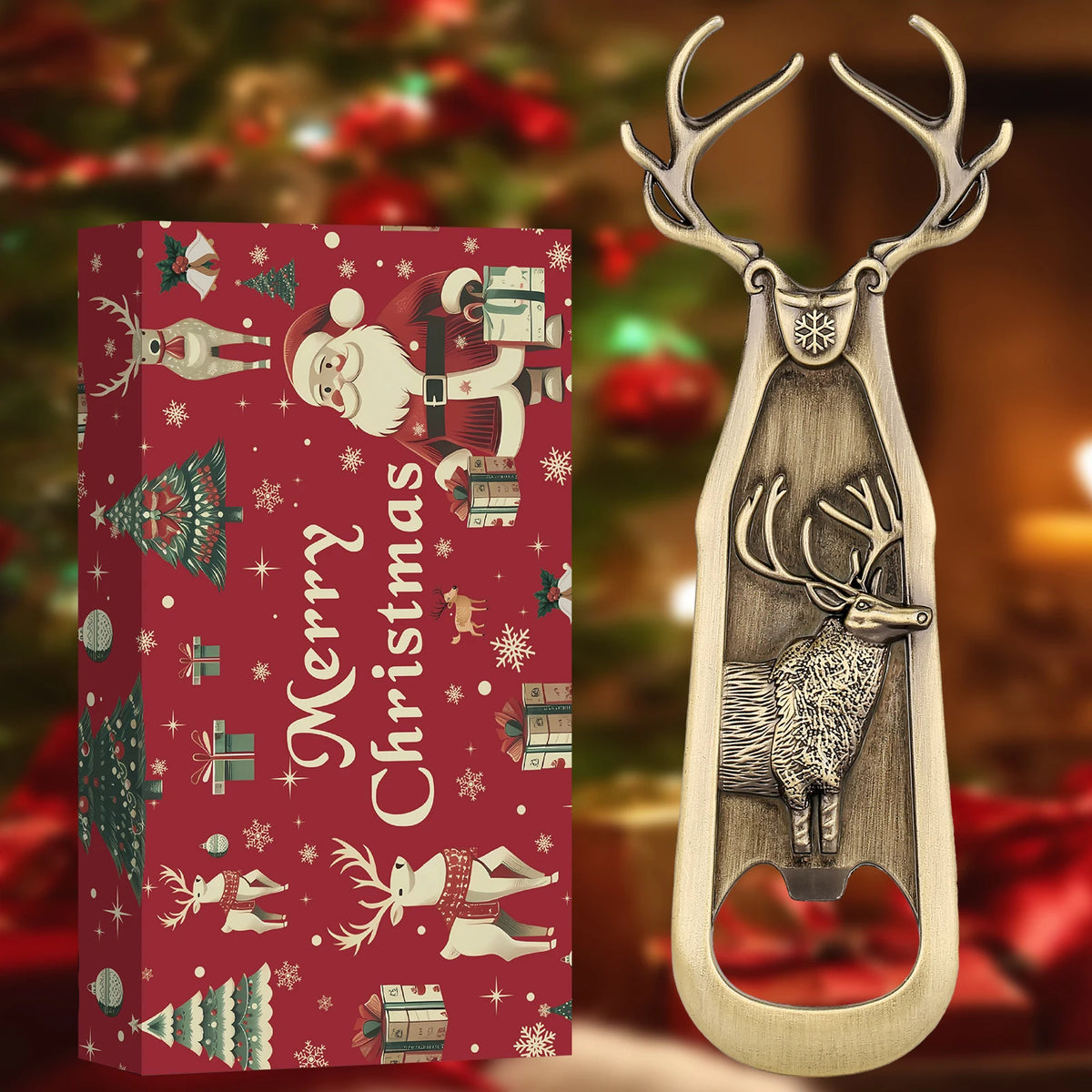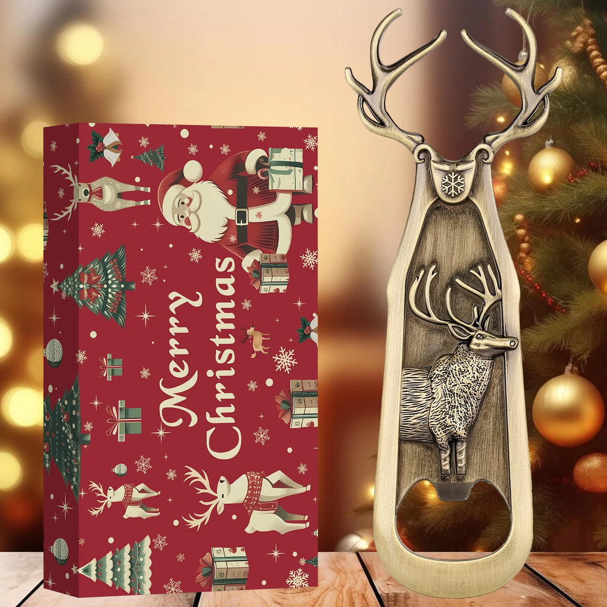 Christmas Reindeer Opener Gifts Set Retro Deer Corkscrew Antlers Beer Bottle Opener New Year Gift - Bronze with Box