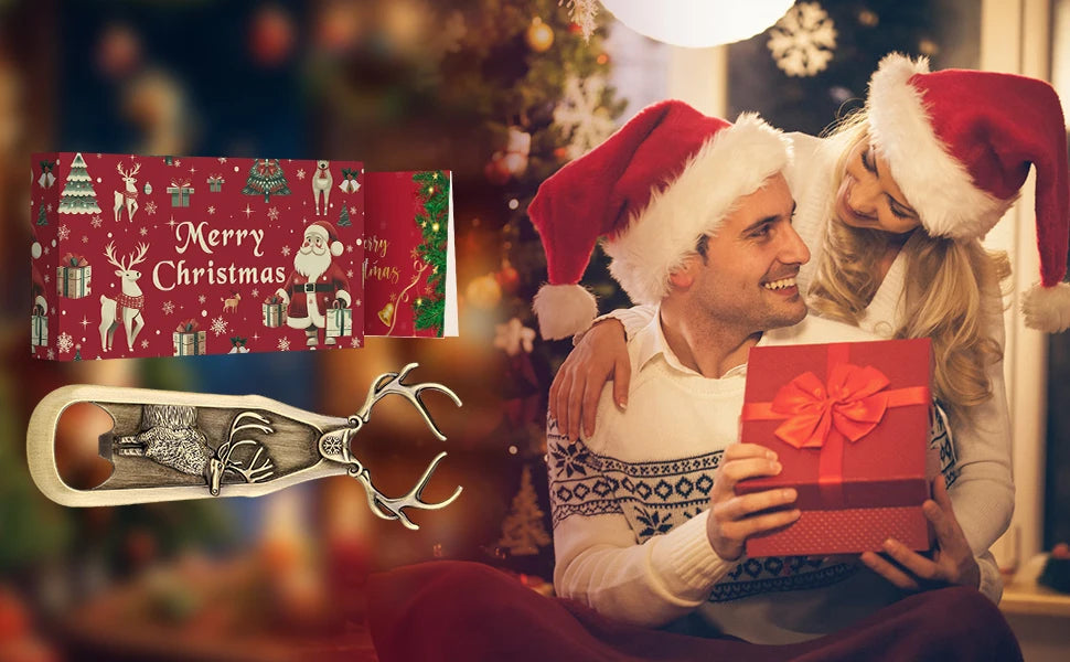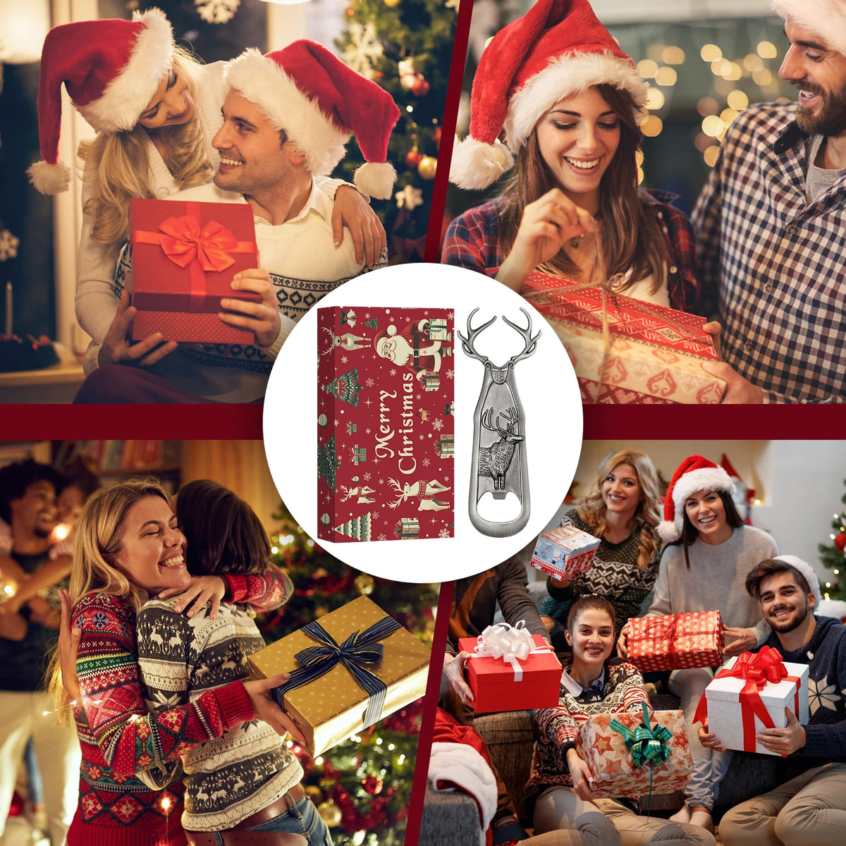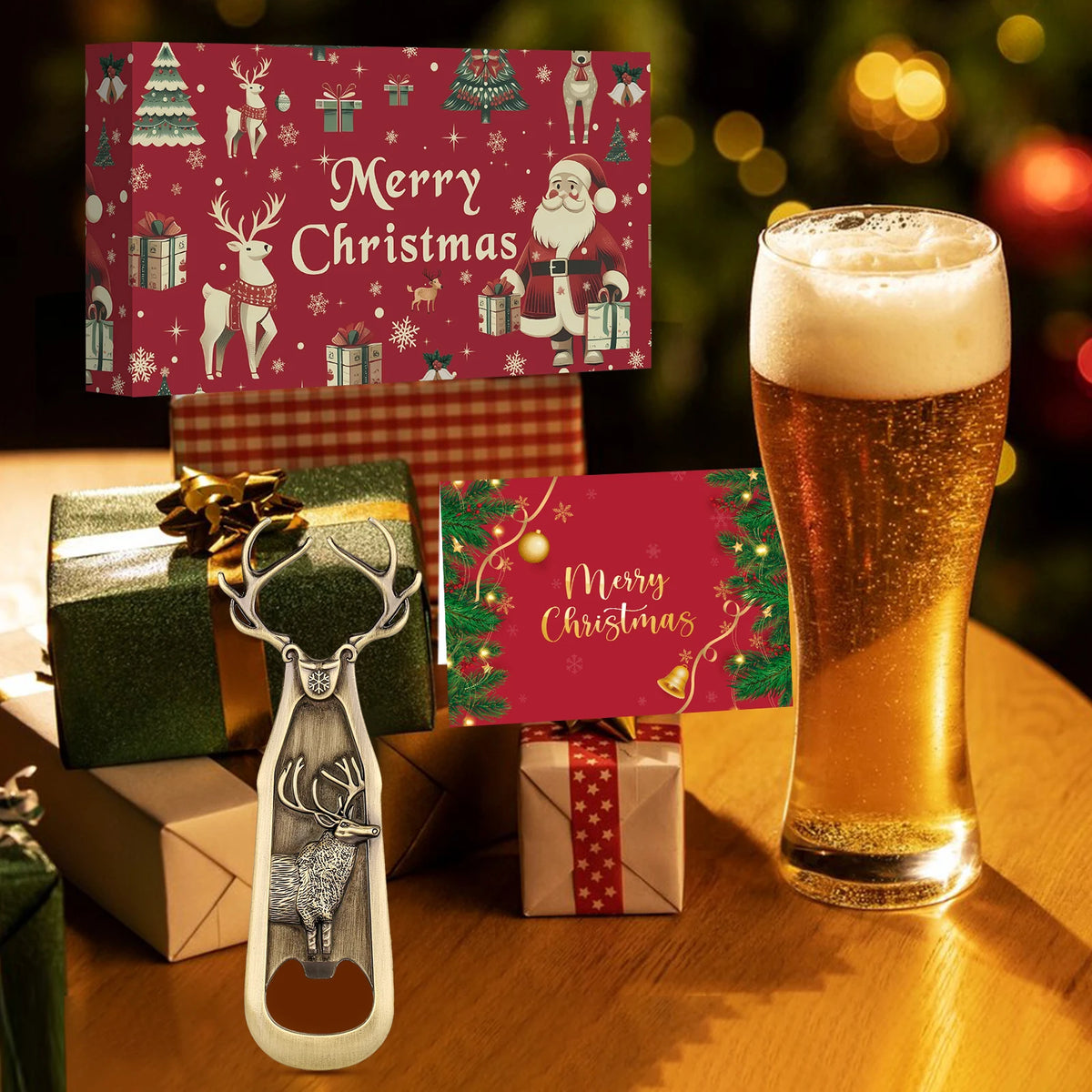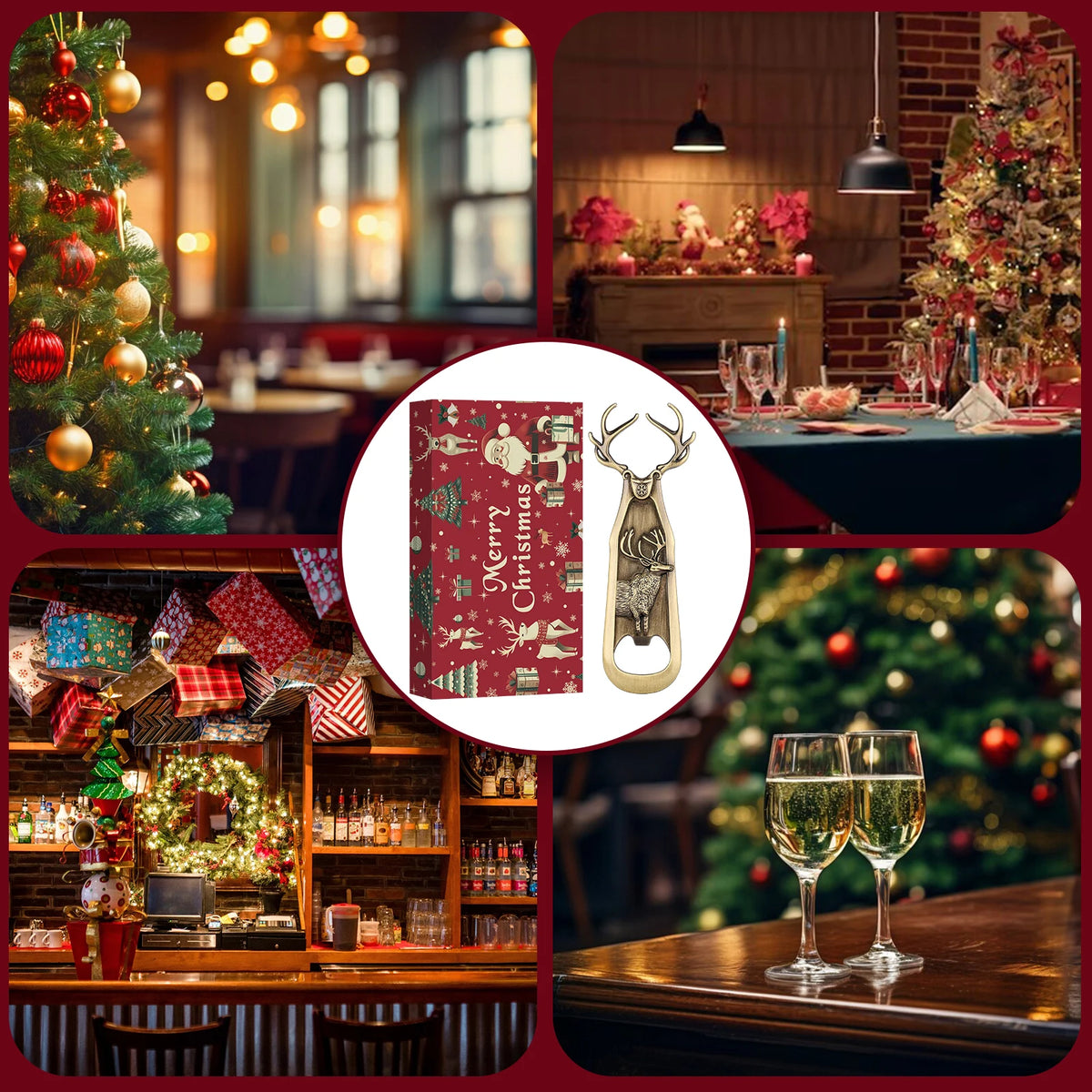Christmas Reindeer Opener Gifts Set Retro Deer Corkscrew Antlers Beer Bottle Opener New Year Gift - Bronze with Box